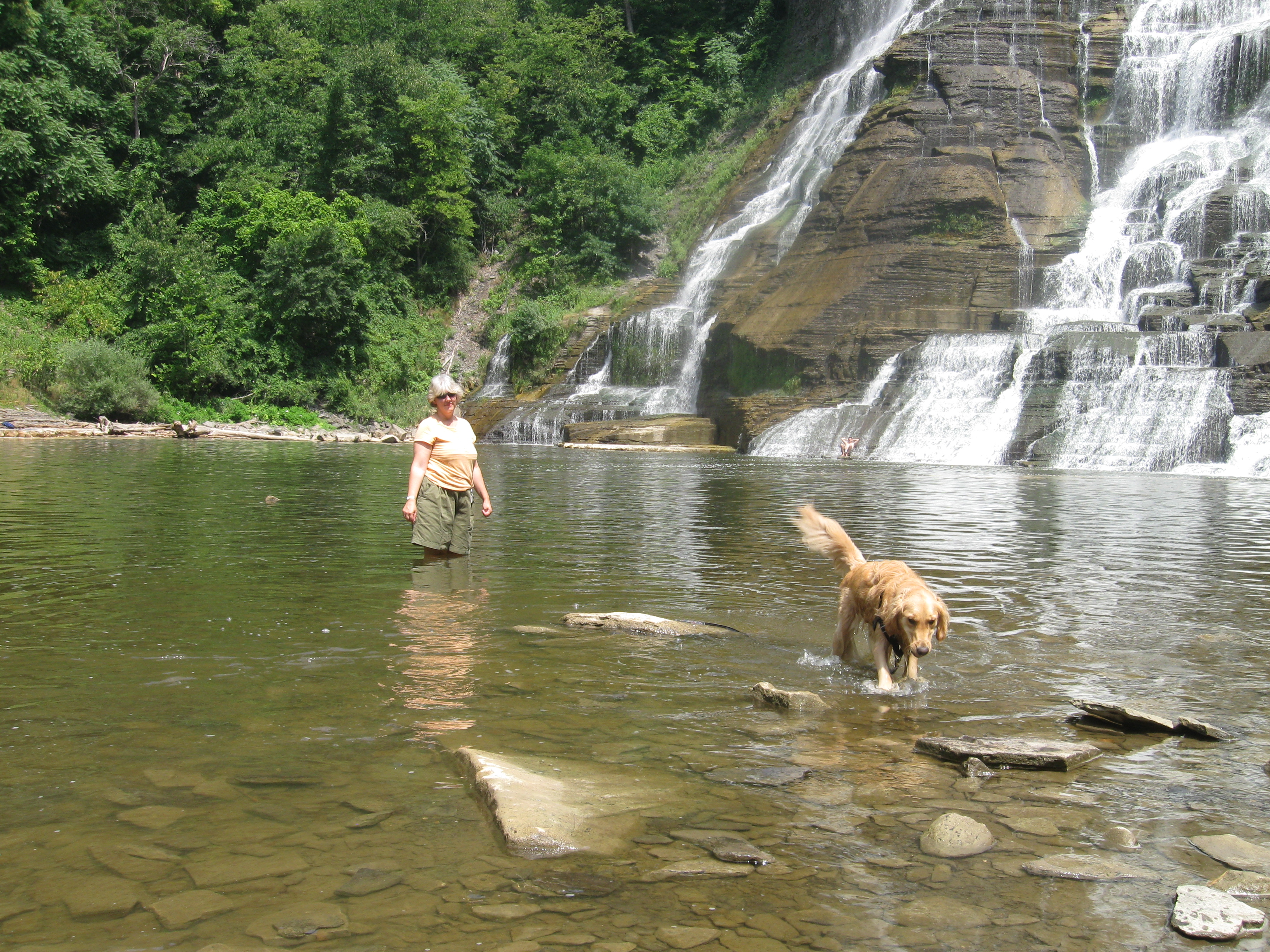 The waterfall is the Ithaca Falls, located 5 blocks from my house. Ithaca has several large waterfalls in the city limits and many more in the surrounding hills (including the highest falls East of the Mississippi River–Taughannock Falls).