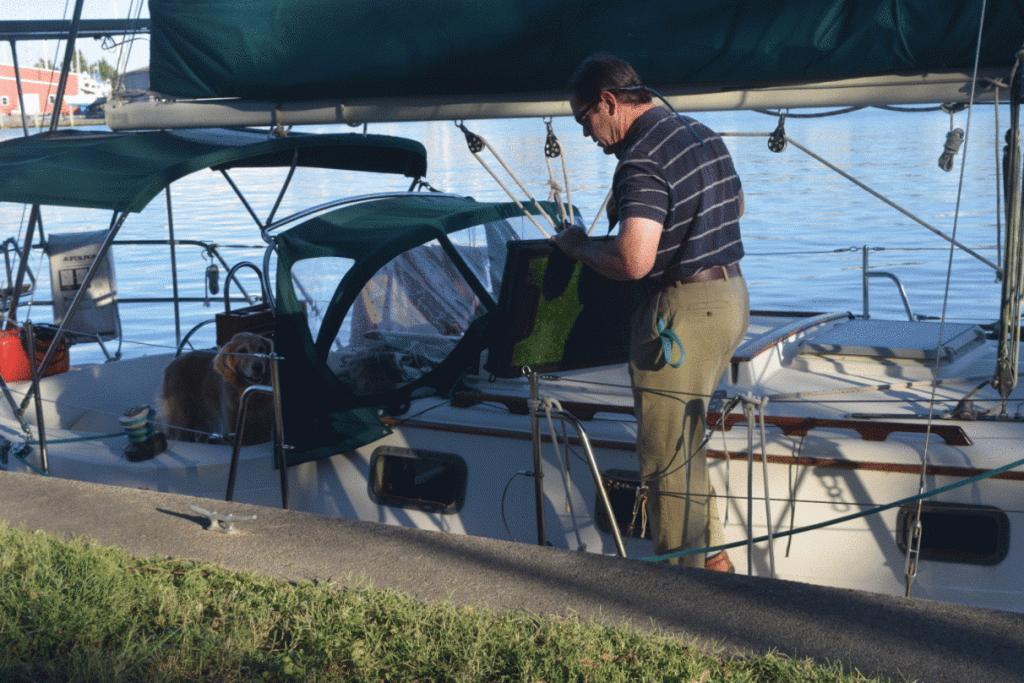 And other hard lessons, if we are underway or moving on and off boat, Tugboat (95 pound American bulldog mix) will always have his life jacket on – it has a handle, you know. Not fun trying to fish a very large dog out of the water with only a collar on. He has tried to follow us on to the dock by walking the very narrow ledge (too narrow for him) from the pilot house door left open on the water side. We securely closed the door on the dock side -he will leap that 4 ft jump every time.
