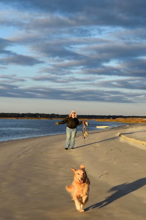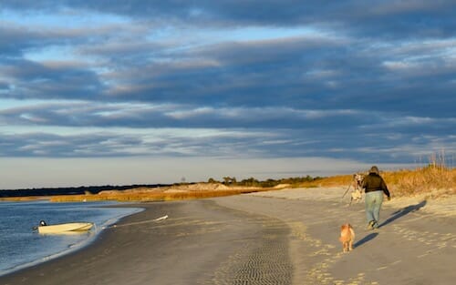 Honey the boat dog wants to go to Little River Inlet beach.