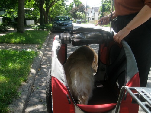 I thought about getting one of those trailers, but I have a feeling that the collies wouldn’t like it anymore than Honey…