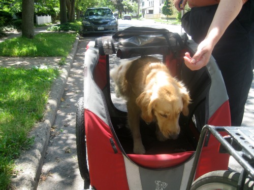 She stepped into the cart without too much coaxing. She even got her whole body into it once or twice. But it was quickly obvious we wouldn’t be riding anywhere this week.