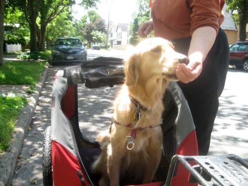 I decided our activities should make me work harder than Honey, like kayaking. Or pulling her in my bike cart.