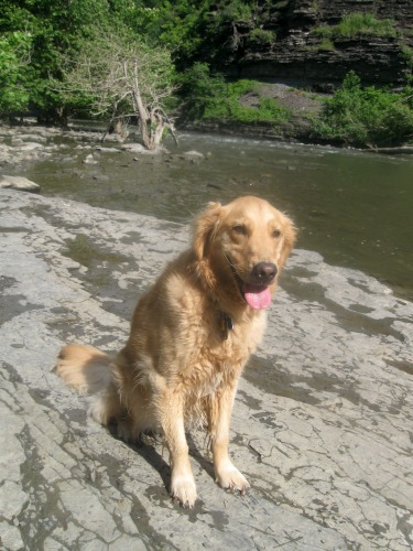 I definitely wear old shoes on walks and hikes with our boys. As you know Goldens will lead you into all sorts of wet and muddy places!
