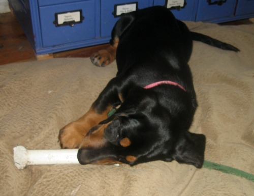 She’s a 9 week old basset hound. She loves to chew, but only on what she’s supposed to.