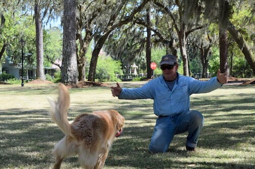 When I’m walking Honey and separating from Mike, I tell her “he’ll be back” as we leave. When we meet up again, I tell her, “let’s go find the dad.” I don’t know for sure that she understands what I’m saying. But I hope that using the same phrases is helping her understand.