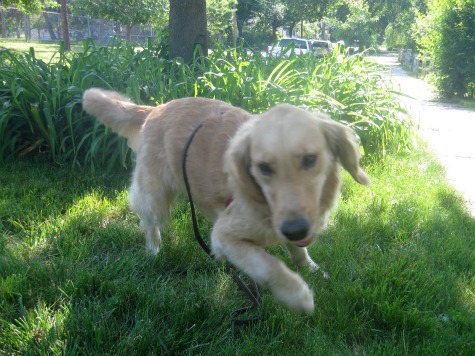 When I had both dogs I NEVER used retractable leashes- it only took one trip outside for me the realize the drawbacks of having one very old that loved to go in circles, and the Beagle following his nose in circles, and me having to juggle two stupid over-sized handle things. But I love having one for Grunt alone. I talk to him a lot when we’re out and about. He has never received actual proper leash training, but I hardly ever have to get pushy with my end of a leash, retractable or otherwise, to get him to listen.