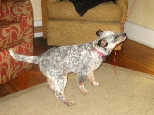 Zoe the foster puppy plays tug.