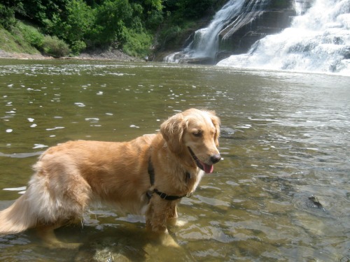 Honey the golden retriever at Ithaca Falls.
