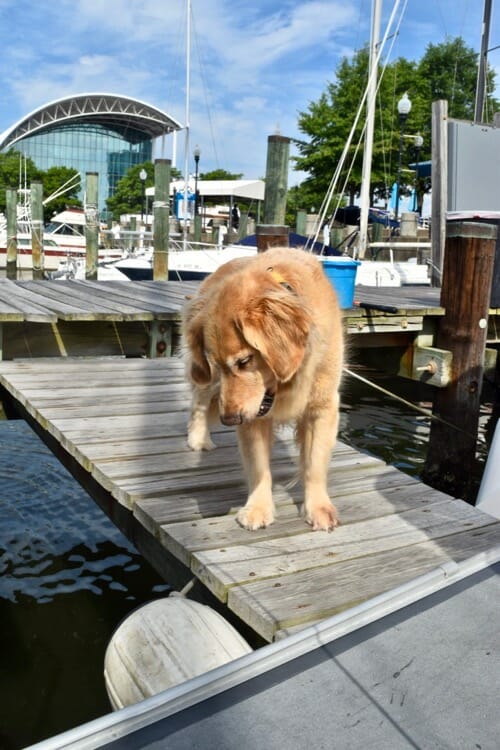 But she will also tell me when she’s not ready to return to the boat. Stopping at the top of the marina ramp is Honey’s way of telling me she’d like to spend a little time sitting or playing outside.