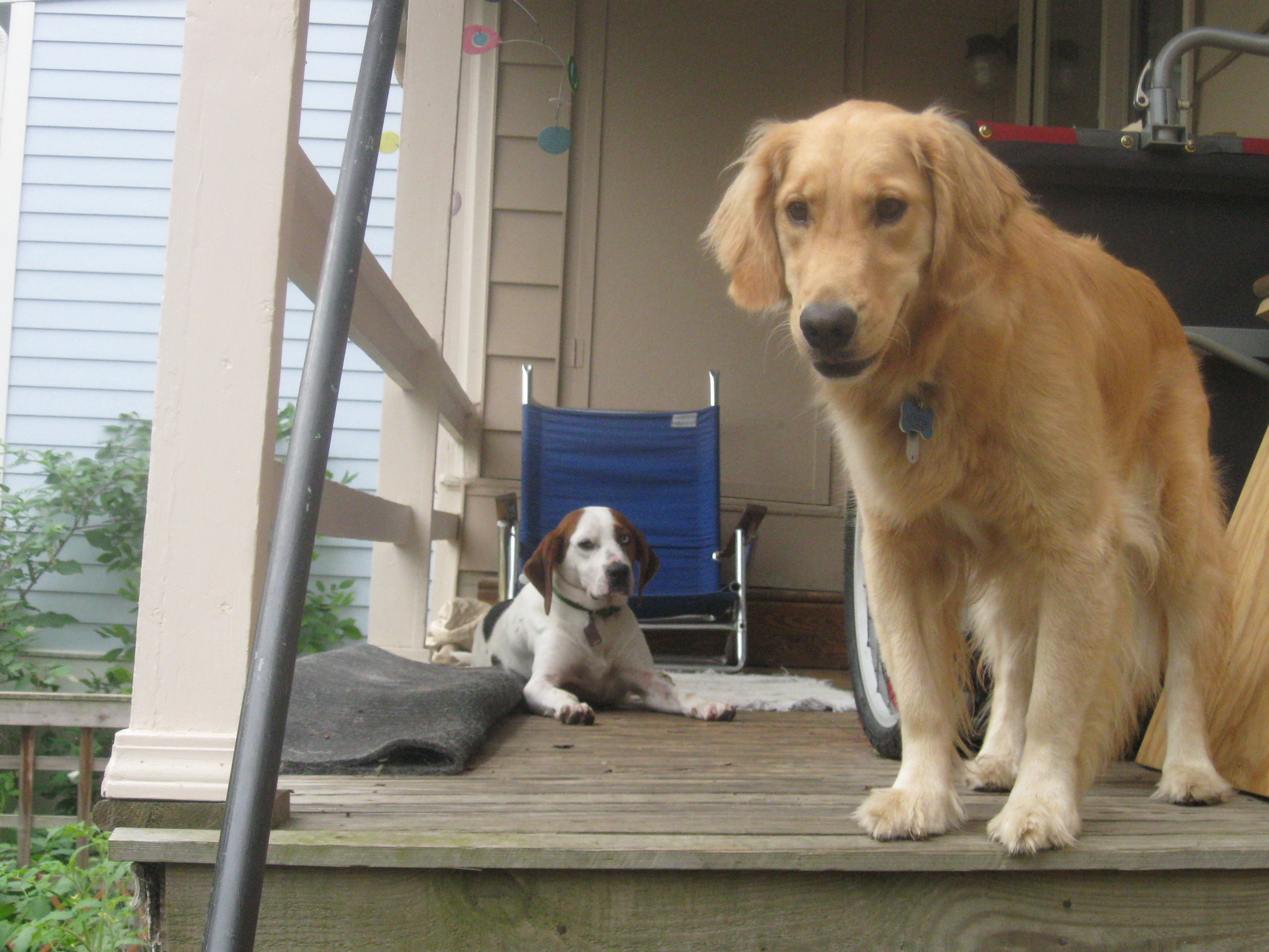 | Barked at everyone walking by the front porch | Sits quietly when anyone walks by as long as they don’t stop |