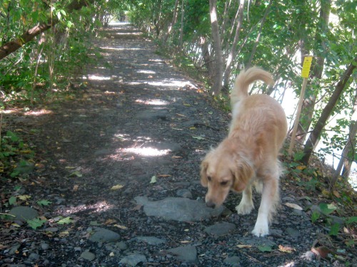 Honey the golden retriever chooses her route.