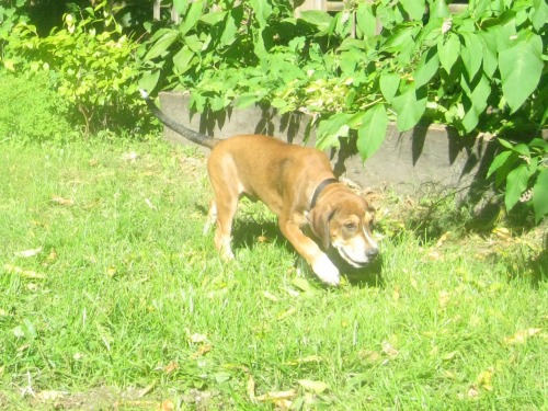Peeing in the yard.
