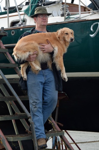 Oh Oz would never do those steps, not even for liverwurst, I’m afraid. But he is small and easily carried. Sorry that bump caused damage to the prop but at least you caught it quickly! I hope you are back on the water soon!