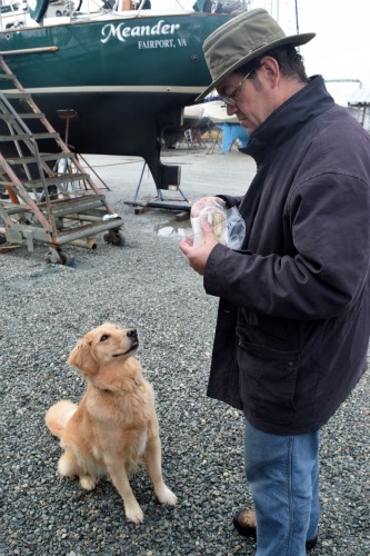 Honey is thrilled to be the belle of the boatyard. She has lots of admirers here.